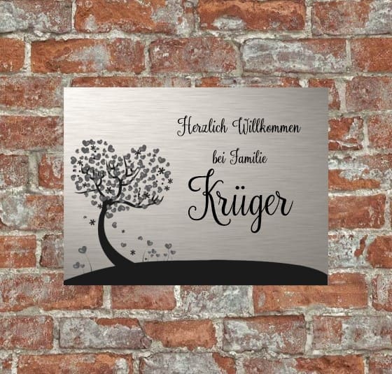 Schilder: Wir bieten eine Vielzahl von Türschildern und Trauerschildern an, die perfekt für jeden Anlass sind - sei es das neue Zuhause oder ein Büro. Wählen Sie aus einer Vielzahl von Designs und fügen Sie einen Namen oder eine persönliche Nachricht hinzu, um ein einzigartiges Geschenk zu schaffen. Unsere Schilder gibt es in vielen verschiedenen Ausführungen.Sie haben die Wahl zwischen Schiefer und weiteren hochwertigen Materialien in verschiedenen Farben wie zum Beispiel Messing, Kupfer oder Silber.