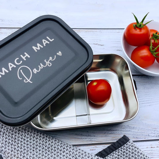 Brotdose in schwarz aus Edelstahl | individuelles Geschenk zum Geburtstag oder Weihnachten | Geschenkidee mit Gravur