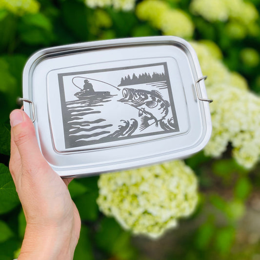 Brotdose für Angler | Frühstücksdose mit Fischmotiv | Geschenkidee Angler | Brotbox mit Gravur