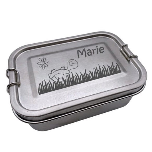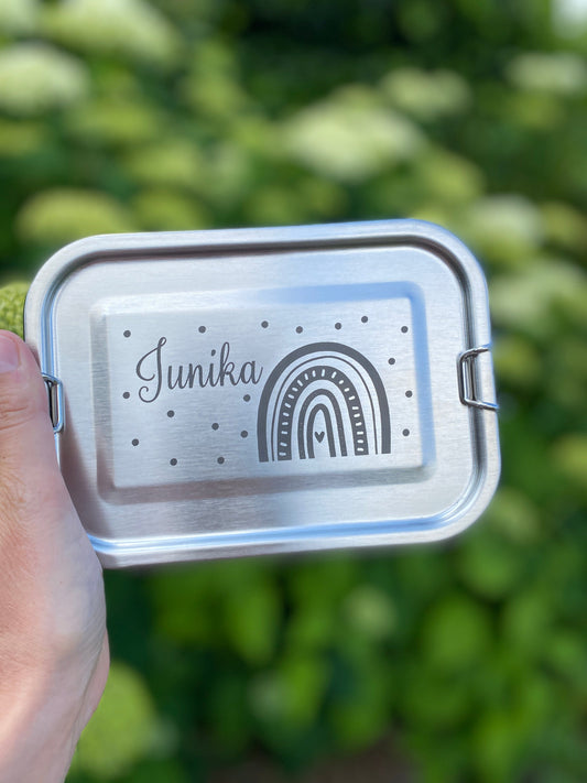 personalisierte Brotdose Edelstahl | Einschulungsgeschenk mit Namen | Geschenk für den Kindergarten | Brotbox für die Krippe mit Gravur