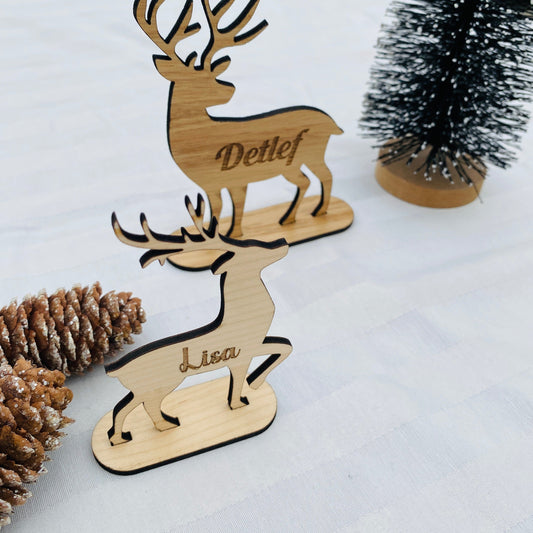 personalisiertes Rentier | Weihnachtsdekoration für den Tisch | Geschenk für die Adventszeit | Platzkarte aus Holz