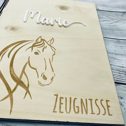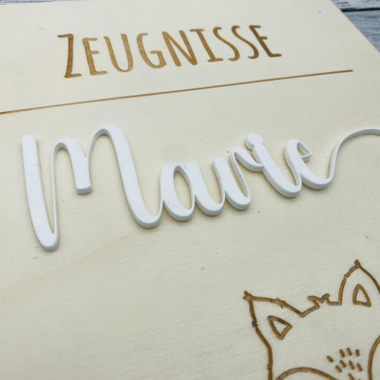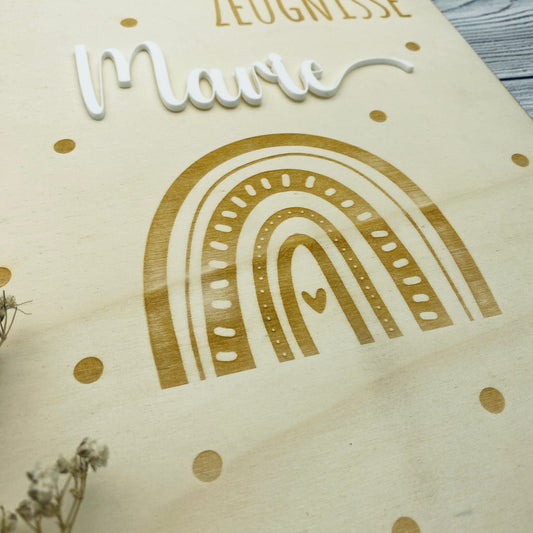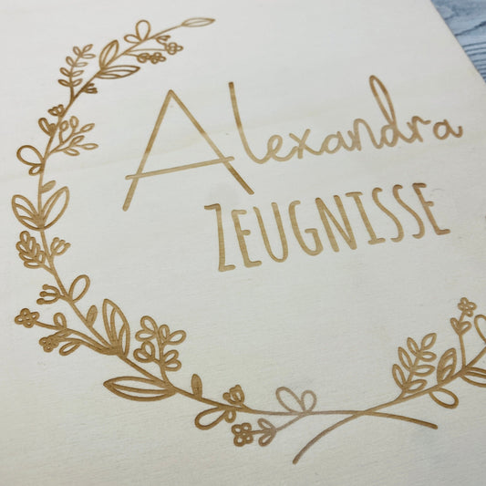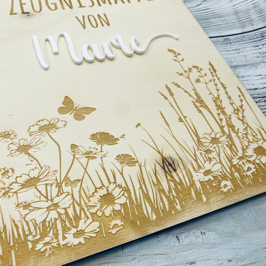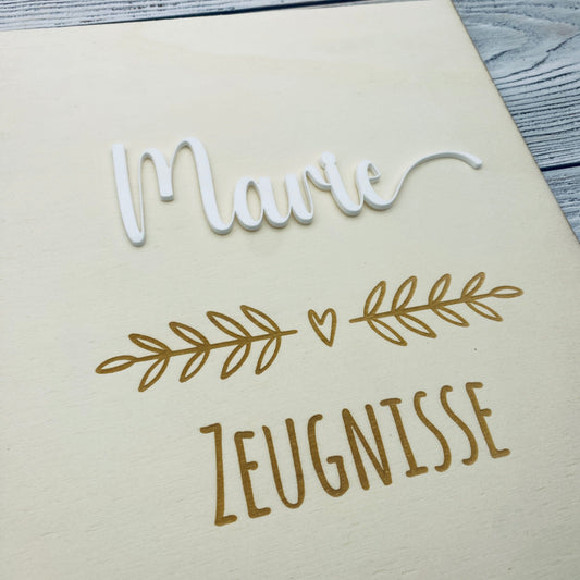 Zeugnismappe personalisiert aus Holz | Geschenk zum Schulstart | Zeugnisordner mit Namen | Einschulungsgeschenk für Mädchen und Jungen