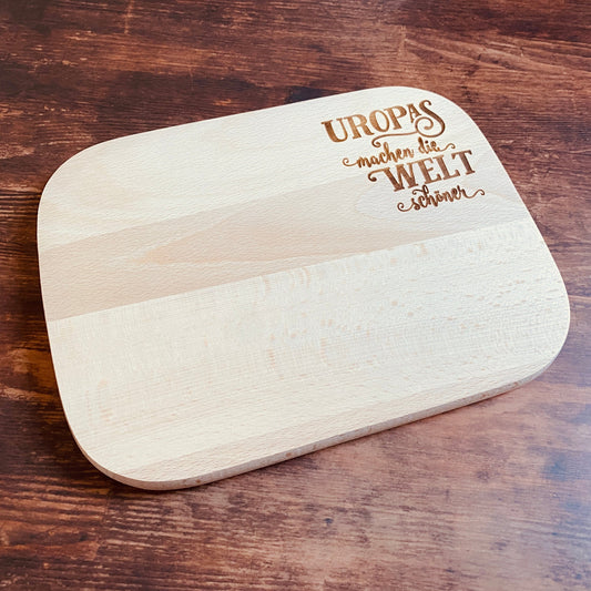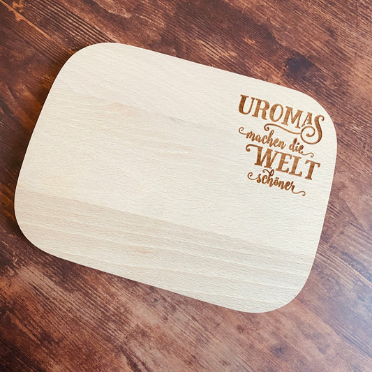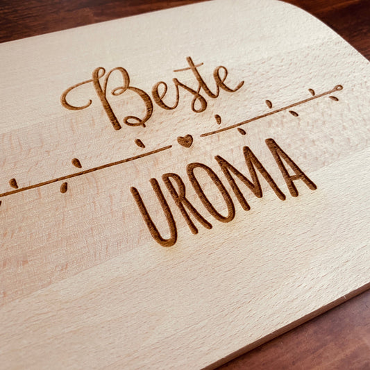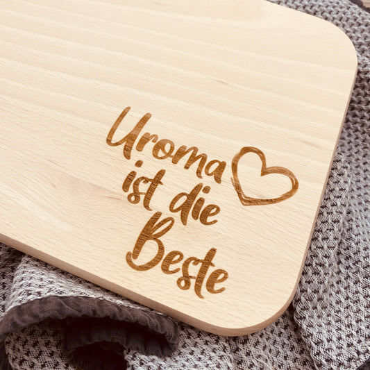 Küchenschneidebrett Uroma | Familiengeschenk | Holzbrett mit Gravur | Frühstücksbrettchen