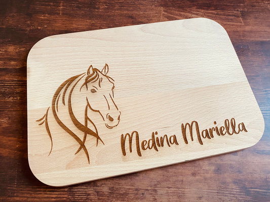 Frühstücksbrett personalisiertes Schneidebrett Geschenk Pferd