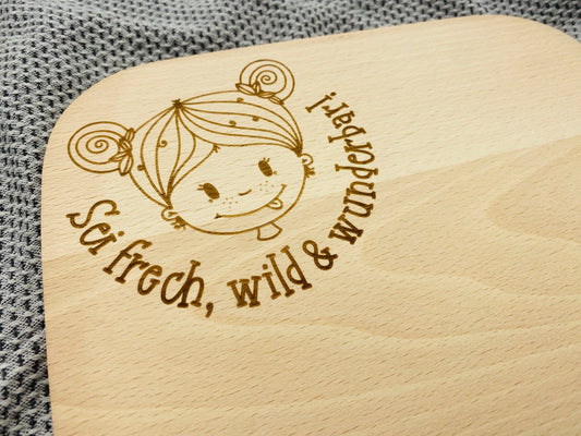 Frühstücksbrett Mädchen frech wild Schneidebrett Geschenk