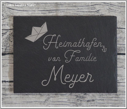 Türschild personalisiertes Haustürschild aus Schiefer