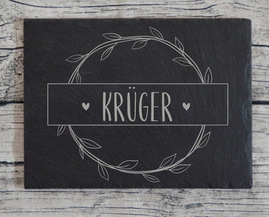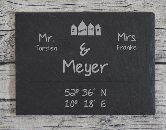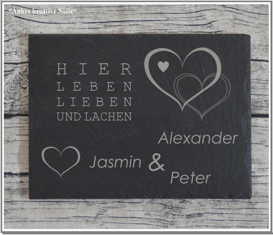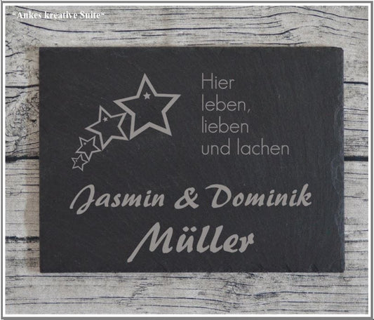 personalisiertes Türschild aus Schiefer | Haustürschild mit Gravur | Namensschilder für die Haustür | Geschenke zum Einzug