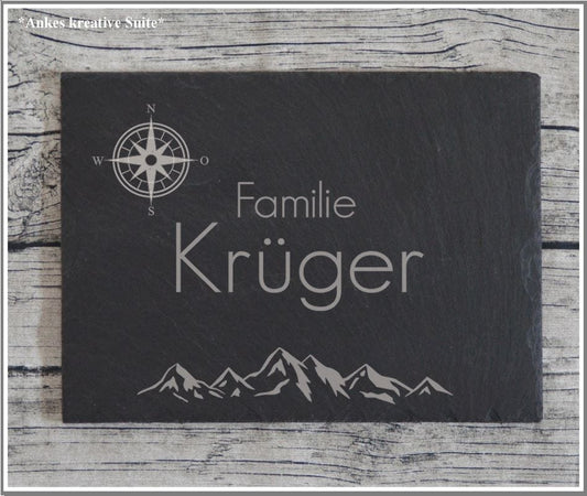 Personalisiertes Haustürschild aus Schiefer | Individuelles Türschild mit Gravur | Handgefertigtes Schiefer-Türschild | Geschenk zum Einzug