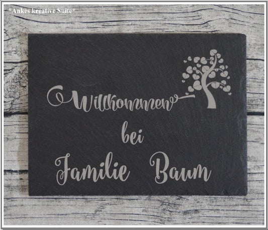 Türschild personalisiertes Haustürschild aus Schiefer
