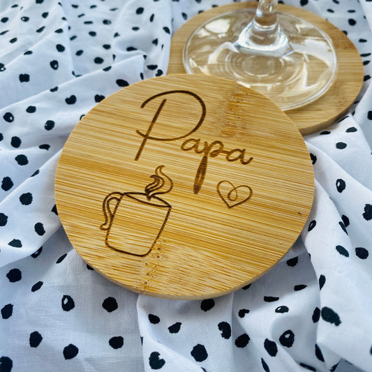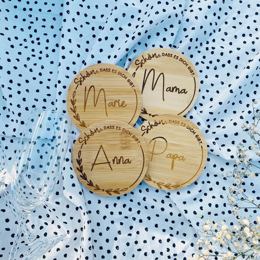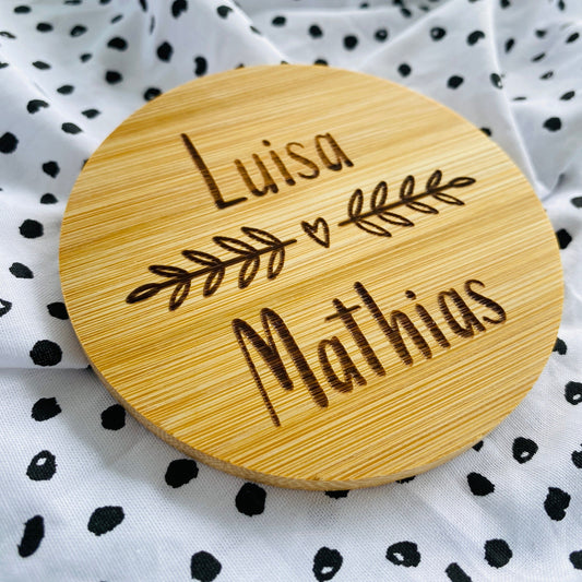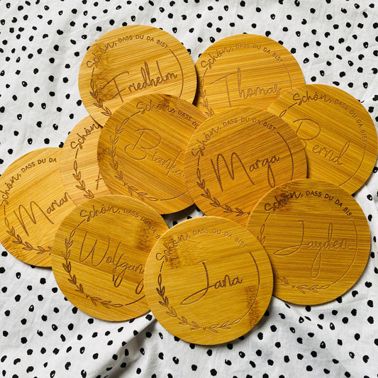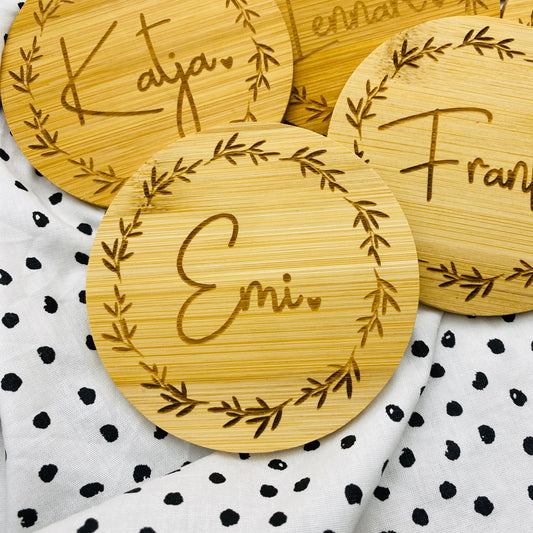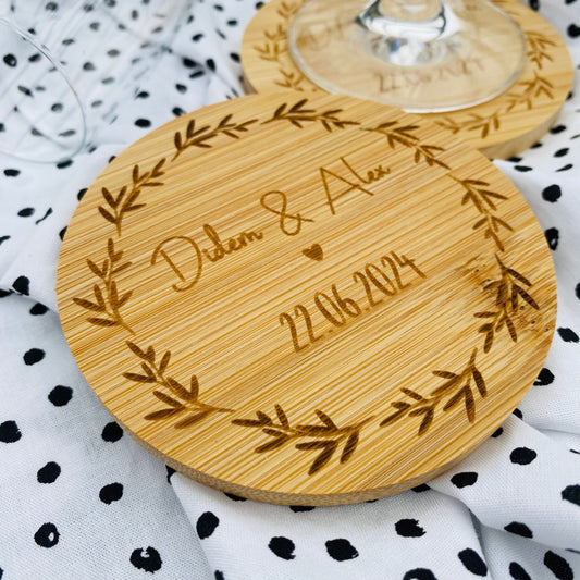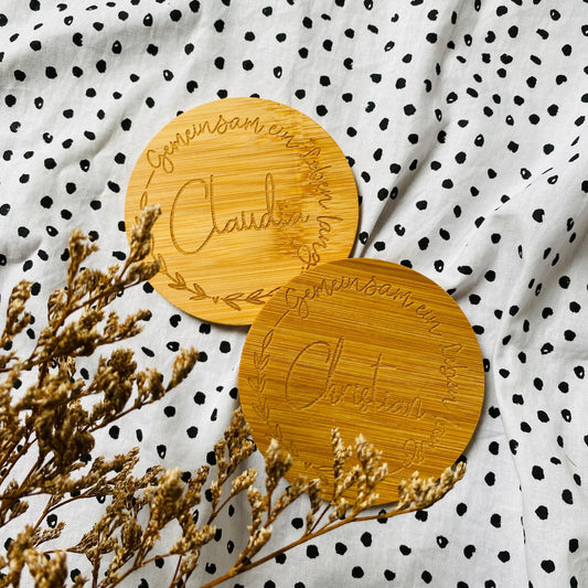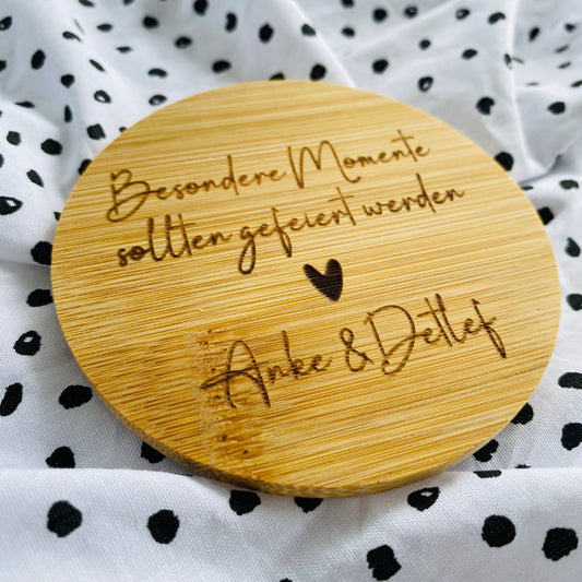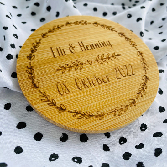 personalisierter Untersetzer aus Bambus | individuelles Geschenk zur Hochzeit oder zum Geburtstag | Untersetzer für Unternehmen