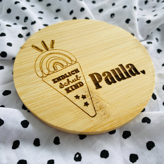 personalisierter Untersetzer aus Bambus | individuelles Geschenk zur Einschulung oder für die Schultüte