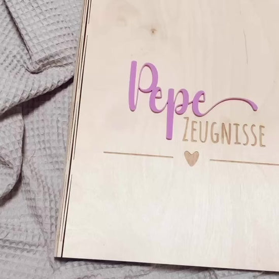 Zeugnismappe personalisiert aus Holz | Geschenk zum Schulstart | Zeugnisordner mit Namen | Einschulungsgeschenk für Mädchen und Jungen